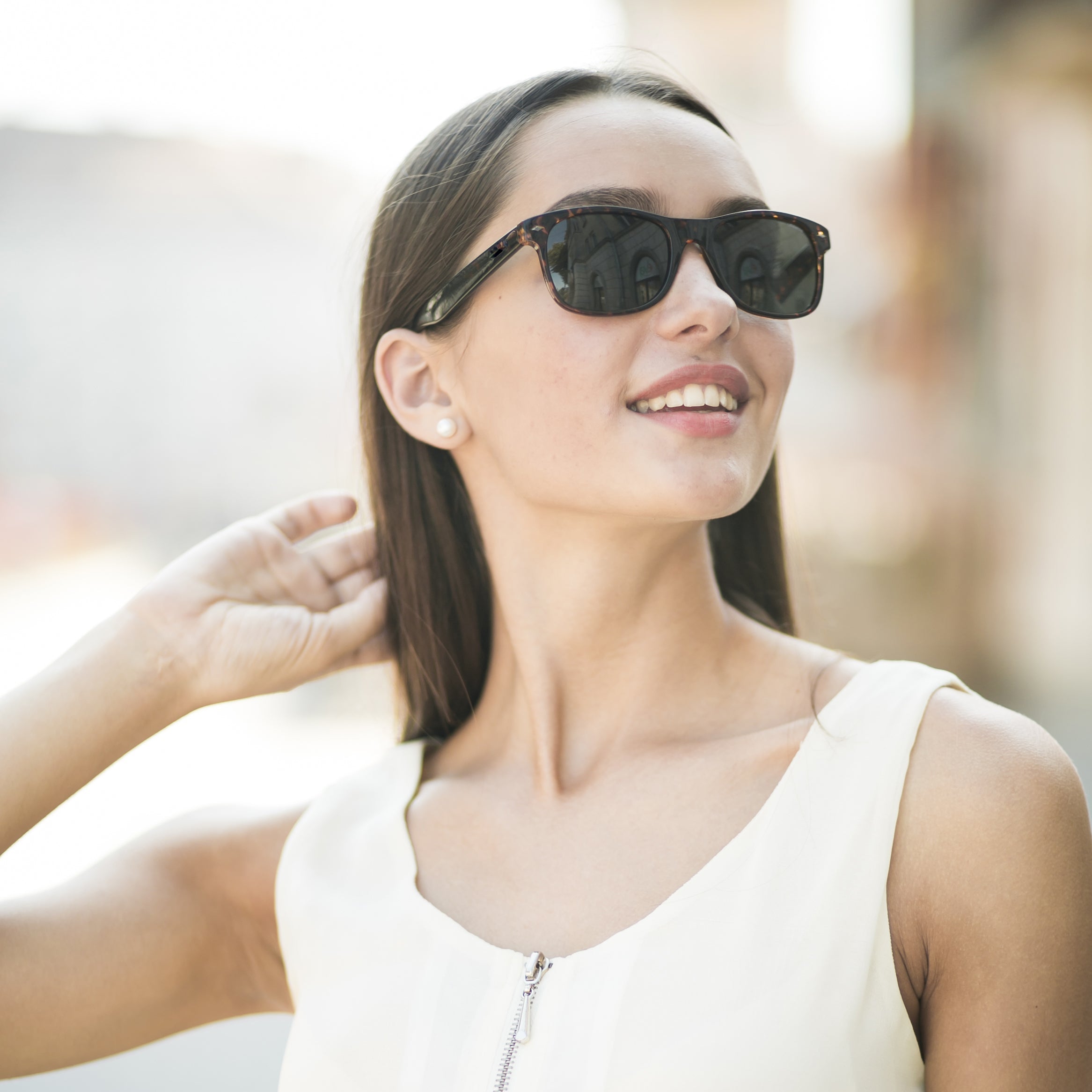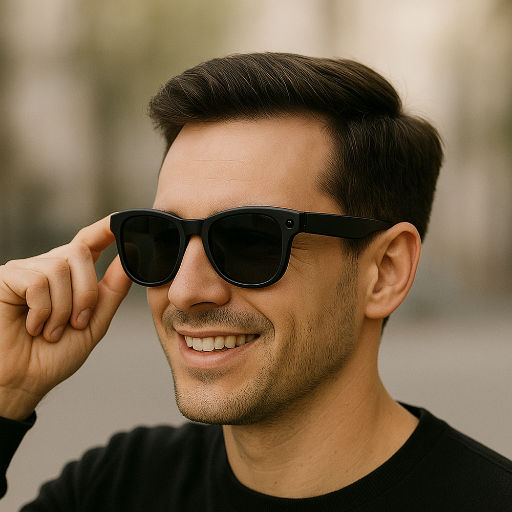 Descobre a fusão perfeita entre tecnologia e estilo com os nossos óculos com colunas integradas. Com design moderno e som de alta qualidade, estes óculos permitem-te ouvir música, atender chamadas e desfrutar do teu dia sem fios, auscultadores ou distrações.